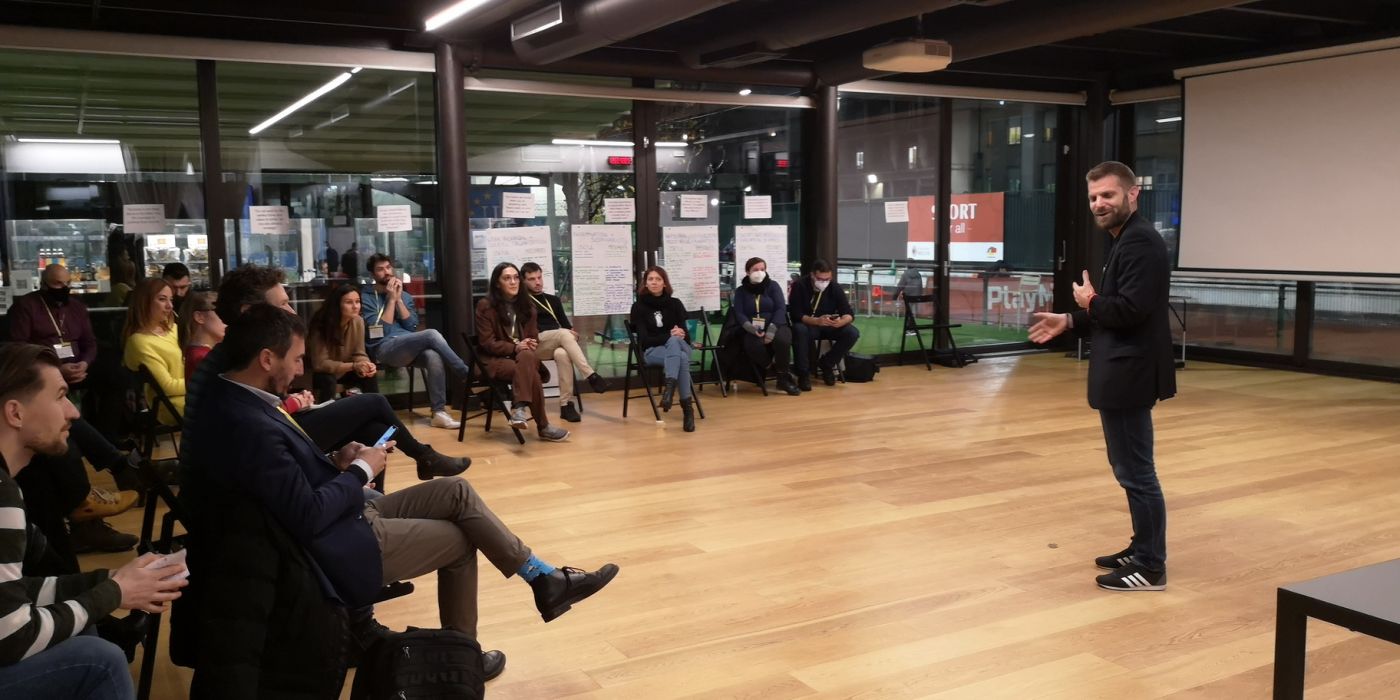 На 10 декември в Милано 20 организации се събраха за първото издание на събитие, посветено на споделянето, дизайна и творчеството. В срещата участваха партньори от Италия, България, Хърватия, Полша, Испания, Швеция, Белгия, Холандия, Чехия, Словакия, Австрия, Литва, Босна и Херцеговина, Турция, Румъния. Събитието се проведе в спортен център PlayMore и бе съобразено с всички необходими мерки за COVID-19. Дейностите продължиха цял ден и участниците посветиха времето си, за да работят по проектирането на новите партньорства за сътрудничество в областта на спорта. Една от целите на тази декемврийска среща беше да се създаде чернова на нови проекти и да се укрепи или формира нова мрежа. Направено бе представяне на организациите и всички се опознаха в много приятелска, уютна и, разбира се, Коледна атмосфера.