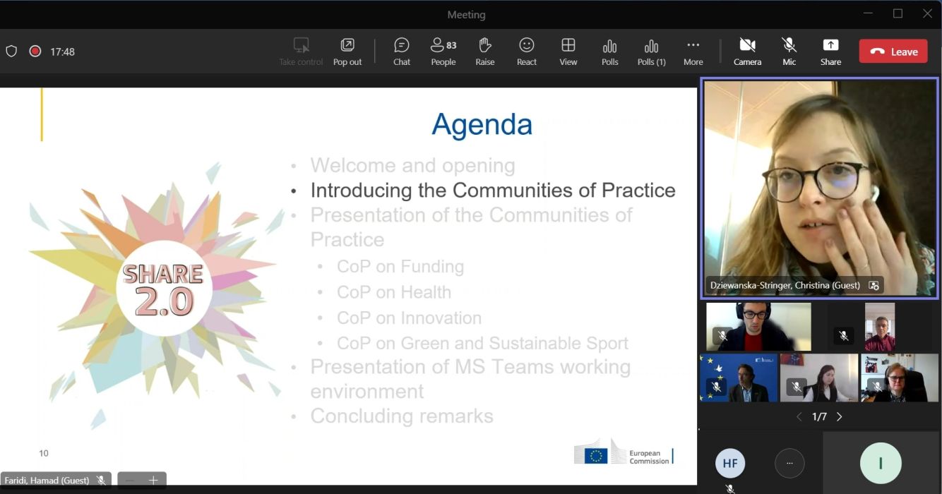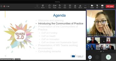 SHARE 2.0 CoP има за цел да надгради успехите на инициативата SHARE, като насърчава засиленото сътрудничество и обмена на знания между заинтересованите страни в спортния сектор. Първата среща събра над 150 участници от различни краища на Европа, включително представители на министерства, регионални и местни администрации, спортни федерации и клубове, както и учени и спортни специалисти. Това разнообразно събрание подчерта големия ентусиазъм и ангажираност към напредъка на мисията на SHARE 2.0.